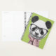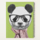 This design features a cute panda bear wearing eyeglasses and a pink knit scarf.