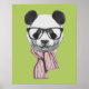 This design features a cute panda bear wearing eyeglasses and a pink knit scarf.