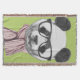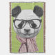 This design features a cute panda bear wearing eyeglasses and a pink knit scarf.