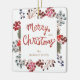 Watercolor wreath with winter red berries and whimsical script "Merry Christmas" on the front and photo on the back. Personalize with your own information and photo. Check our store for more ornament options.