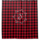 Cozy red Buffalo Check Christmas/Winter plaid shower curtain with customizable wreath monogram.