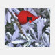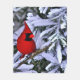 A beautiful Red Cardinal resting among snowy winter evergreens.