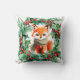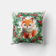 Winter Red Fox Green Berries Baby Shower Gift Throw Pillow