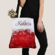 This roomy tote bag is the perfect accessory for holiday shopping, a winter wedding, or any time you want to show your style. The design features Christmas red with white snowflakes, and it is personalized with a name, initials, or anything you like.