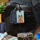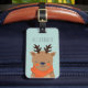 This adorable personalized luggage tag makes a great kids stocking stuffer or gift for grandchildren. Cute wintry design features a snowy mint green background with a cute Christmas reindeer illustration decked out in a winter hat and scarf. Personalize with a name or monogram on the front, and add your contact information to the reverse side.