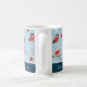 Add a cute seasonal touch to your holiday winter kitchen decor with this adorable custom blue coffee mug. Mug has a festive pattern of robins on tree branches in the snow. There are also Santa Christmas hats and red mittens. Add your family surname or a first name for a personalized touch.