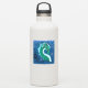 Blue, green and teal dragon profile portrait with snow falling all around. Black tribal rose.
