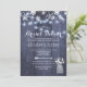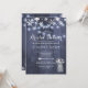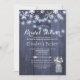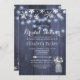 Chic elegant country rustic bridal shower party invitation template with white falling snowflakes, strings of twinkle lights, a bunch of baby breath flowers in a mason jar and an arrow on blue barn wood background. Fill in your information in the spots, You can choose to customize it further changing fonts and colours of lettering. ---- The invitation is suitable for an elegant formal country rustic winter / Christmas bridal or bachelorette parties. --- If you need assistance, please contact me!