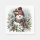 Nestled among pinecones and poinsettias, a cheerful snowman greets the season with warmth and whimsy. Holly berries and frosted branches frame a moment of quiet joy beneath softly falling snow.