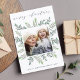Festive and elegant in shades of pale green, greyed jade and white, our Winter Sage holiday photo card features your favourite square photo framed by sketched green botanical leaves. "Merry Christmas" appears at the top in modern calligraphy script lettering. Personalize with your custom greeting, family name or names, and year along the bottom.
