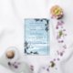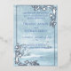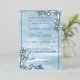 This elegant wedding invitation features a winter wonderland scene in shades of blue, complete with snow-covered pine trees. The silver frame adds a touch of sophistication to the design. Perfect for a winter wedding, this invitation will set the tone for your special day. Personalize it with your own special occasion.