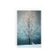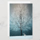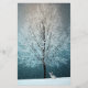 Design features an image of a wintry tree in snow.