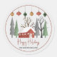 This Winter scenery themed Christmas Classic Round Sticker is the perfect way to celebrate the Holidays! Featuring a cozy little house surrounded by trees, pretty snowflakes and festive ornaments, it will bring a smile to your face and make your Christmas tree look even more beautiful!