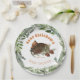 Pine green natural watercolors bring a fresh take on floral baby shower invitations. Use it for greenery and forest themed party decor.