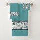 Bath & Hand Towels – A stunning watercolor winter forest scene stretches across both ends of each towel, beautifully framed against a rich teal background that enhances the serene, rustic aesthetic.