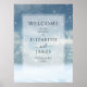 This winter snow forest wedding welcome sign can be personalized with your information in chic typography. Designed by Thisisnotme©