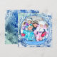 This frosty, icy design frames your favourite photo and is reminiscent of a snow globe. Fully customizable design allows you to change all of the text on the front and back. The suggested greeting on the back says "Celebrate the season and best wishes for a Happy New Year." The text style, colour and size can also be changed by clicking on CUSTOMIZE FURTHER.