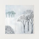 A snowy winter landscape scene with trees and a dry stone wall. Brrr! Original art by Nic Squirrell.