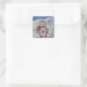 Is this not the cutest and cuddliest winter snow penguin that you have ever seen? He has come out of his igloo at the North Pole to greet you. The little penguin is painted in soft pastel gray and white, with a vibrant orange nose and feet. He wears a red woolly scarf and has a red heart on his tummy. The frosty night sky is full of orange and yellow stars and a crescent moon hangs low.