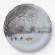 This lovely plate is decorated with a snow landscape picture, the two dogs in the foreground are having a good sniff around and enjoying the snowy landscape. The original scenic image is a watercolour painting of a place in London called Pole hill, it always looks really festive when covered in a blanket of snow. The dogs names are Tod (the tan German shepherd mixed breed) and Eddie (the black and tan terrier/collie mixed breed, both sadly no longer with us. I think this festive snow scene makes a very nice place mat and will make any Christmas dinner table look very special. I didn’t put a Christmas message on the plate because the image will also look great throughout the year.