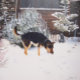 Winter snow scene with cute black and tan dog jigsaw puzzle