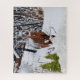 This jigsaw puzzle features a photograph of a mule deer in the snow. An illustration of falling snow and snowy pines was added as an overlay. A winter season puzzle like this would be a great gift for anyone who loves nature and wildlife. Puzzles are fun for family and friends to put together on a cold winter day.