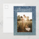 Modern winter snowfall blue Christmas photo card with the text blessings in cream elegant script on a chic dark blue watercolor background. Simply add your name and favourite family photo to this beautifully customized Christmas poscard. Add a handwritten personal message to the back and send it to your family and friends! Exclusively designed for you by Happy Dolphin Studio.