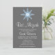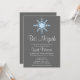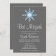 A trendy blue and grey snowflake Bat Mitzvah invitation. Shown in grey, white and blue. Easily personalize with your party details.