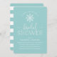 Sparkling with wintry style, our snowflake bridal shower invitation features modern whimsical typography in crisp white with a single snowflake illustration, on a winter ice blue background. Add your bridal shower details using the fields provided.
