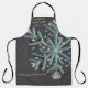Simple chic cool all over print apron to wear in winter season or to give it as a thoughtful useful original gift..Customizable personalizable with your text or even can delete the script for a very modern look.. Unique design,big single snowflake digitally hand drawn by me.The colours are inspired from subtle vintage retro palette,with nuances of teal,ivory,peach,gold put in evidence by the dark grey neutral background.Suitable for women or men passionate with cooking as well.