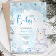 Winter Snowflakes Bear Blue Flowers Baby Shower Invitation