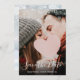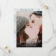 This modern script photo save the date card features winter snowflakes falling across your special photo overlayed with an elegant script save the date above your names, date and venue in white text. Designed by Thisisnotme©