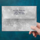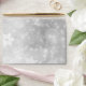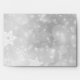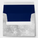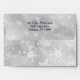 Festive winter / holiday invitation and greeting card envelope, with a white and silvery sparkling look, with white snowflakes, on the outside and a solid navy blue, on the inside. Personalize the blue return address, on the back flap, to suit your needs.