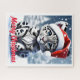 Winter Snowy Santa Cute Snow Leopard Cub Christmas Jigsaw Puzzle