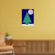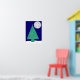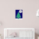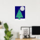 An evergreen made of Celtic knotwork against a starry sky with a Celtic knotwork moon.