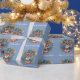 Winter Solstice Holiday Deer Wreath Berries Christmas wrapping paper with blue background.