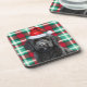 Winter Themed Black Labradoodle Holiday Plaid Coaster