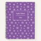 Winter themed notebook that features a modern white snowflakes vector pattern on a purple background. Personalize this festive and winter themed design with the name or text of your choice.