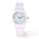 Celebrate winter (or Christmas) with this simple, yet elegant design: a minimalist white snowflake on a cool, ice-coloured background. The twelve points of the stylized snowflake correspond to the 12 hours of the watch face.