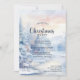 Invite your friends and family to your Christmas celebration this year with this invitation that features a wintery scene with snow-laden pine trees beside a lake, and a deer can be seen entering the clearing.