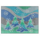 A modern, stylised winter landscape with frosted pine trees and sparkling snowflakes. Cutting board with a green, blue, silver grey and white customizable design for you to personalise with your own text, images and ideas. Image created using a digitally enhanced coloured pencil drawing.
