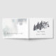 Winter wedding guest book featuring pine trees, mountains, and snow scene with a light watercolor splash on the back of the book. The colours are in shades of grey, green, and blue. Easy to personalize with your own information.