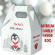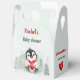 A little sweetheart is on the way! Winter boy baby shower medium favour boxes featuring adorable baby penguin with a red heart in the frosty forest. Perfect for a winter baby shower and around the Valentines day time. You can choose from 3 sizes of these gable favour boxes. Easily personalize the text. - Kate Eden Art