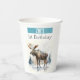 Birthday party paper cups featuring a moose celebrating winter. Customize this product by adding your party information.