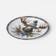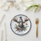 Birthday paper plates featuring a watercolor Moose. Winter vibes, snowflakes. Customizable.