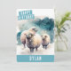 A cute watercolor birthday card featuring sheep celebrating winter on the front with "Happy Birthday" in a white, all-caps bold font. Personalize the front by adding your name(s). The back of the card features space for your typed or handwritten message.