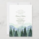 This design features greenery woodland emerald green Christmas trees and snow with dusty blue and light green watercolor hills. Great for your wedding celebration during Christmas time!