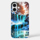 Stunning anime phone case featuring a frozen waterfall in winter with snow and ice and gentle morning sunlight. Ideal for scenic and tranquil seasonal designs.
