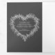 Mistletoe hand-drawn botanical art in a heart shape wedding program with 2 full-page photos in dark grey and snowy winter white. Personalize this wedding tri-fold program with your own wedding ceremony details. Simple heart botanical line art mistletoe leaves and berry design in a very dark charcoal grey and on white. Other colours and matching wedding items available. © Original drawing and design by Sarah Trett exclusively for www.mylittleedenweddings.com on Zazzle.