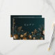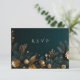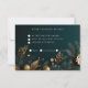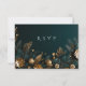 Beautiful Winter Wedding RSVP card in a dark hunter green with pretty gold pine cones, pine branches and golden leaf accents.